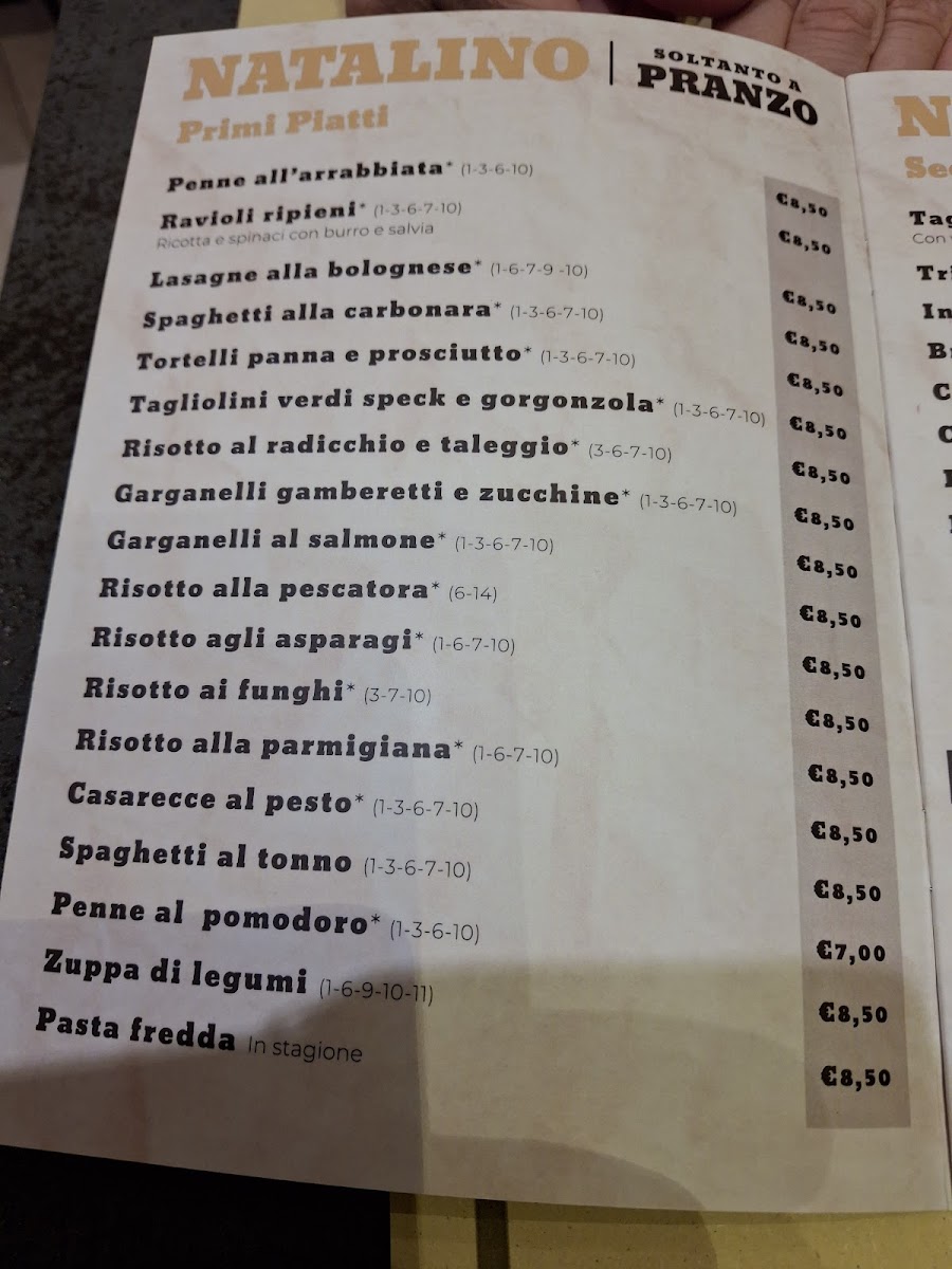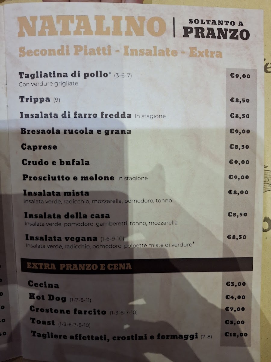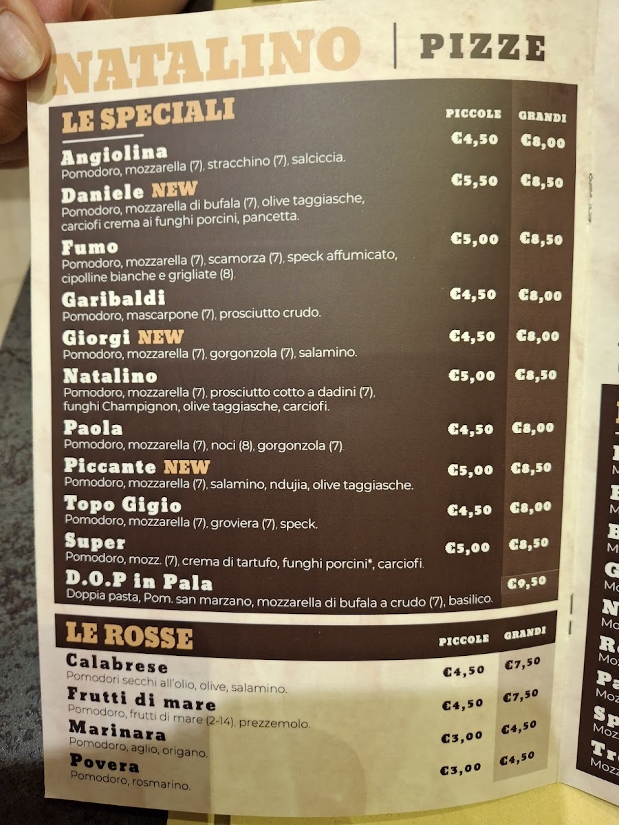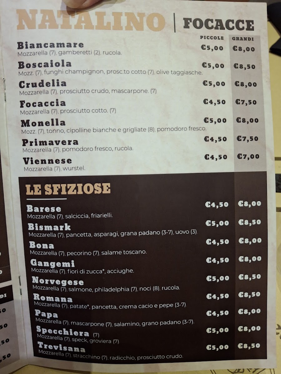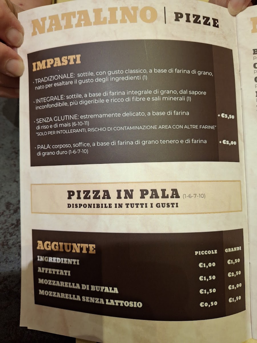 The menu at Gelateria Natalino offers a variety of options combining pizza, bar selections, and gelato in one location. Visitors can find an assortment of pizzas prepared with traditional ingredients, alongside pasta dishes and mixed salads. The bar service includes beverages such as soft drinks, which complement the food offerings.